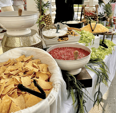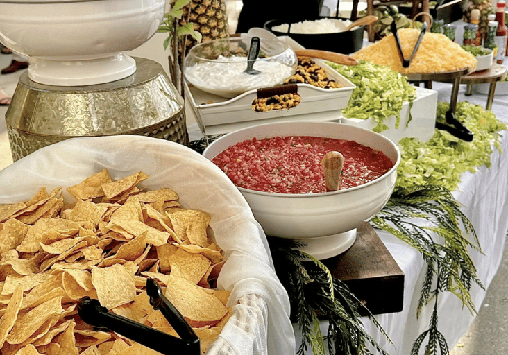 · All serving platters and serving equipment will be provided for use during the event and are included in catering costs.